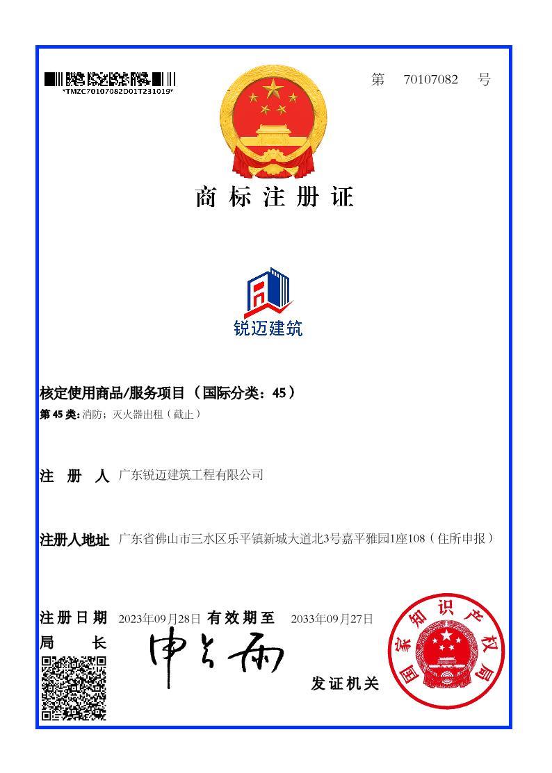热烈祝贺我司成功获得“锐迈建筑”商标的国家商标局核准注册证书
